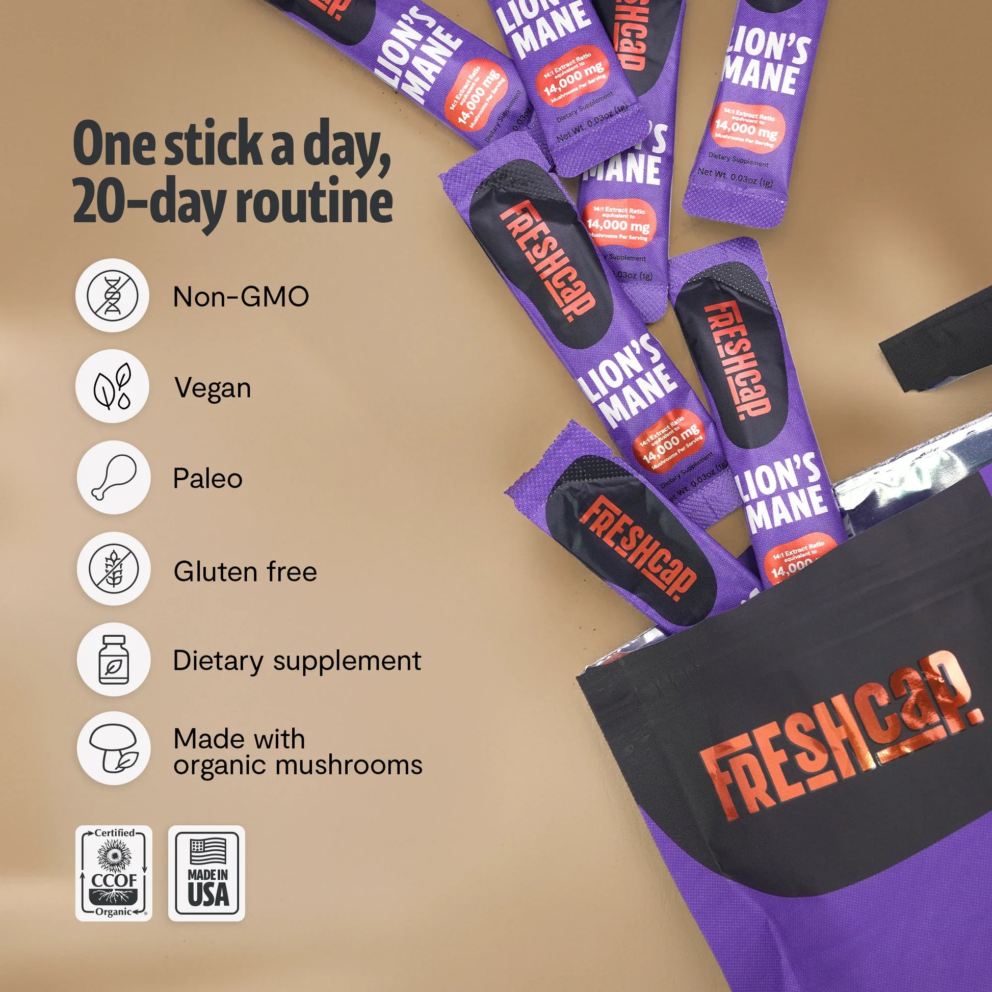 Premium Lion's Mane mushroom powder supplement for mental clarity and cognitive function. Triple-extracted for maximum potency, delivering 14,000mg raw mushroom power in versatile powder form.